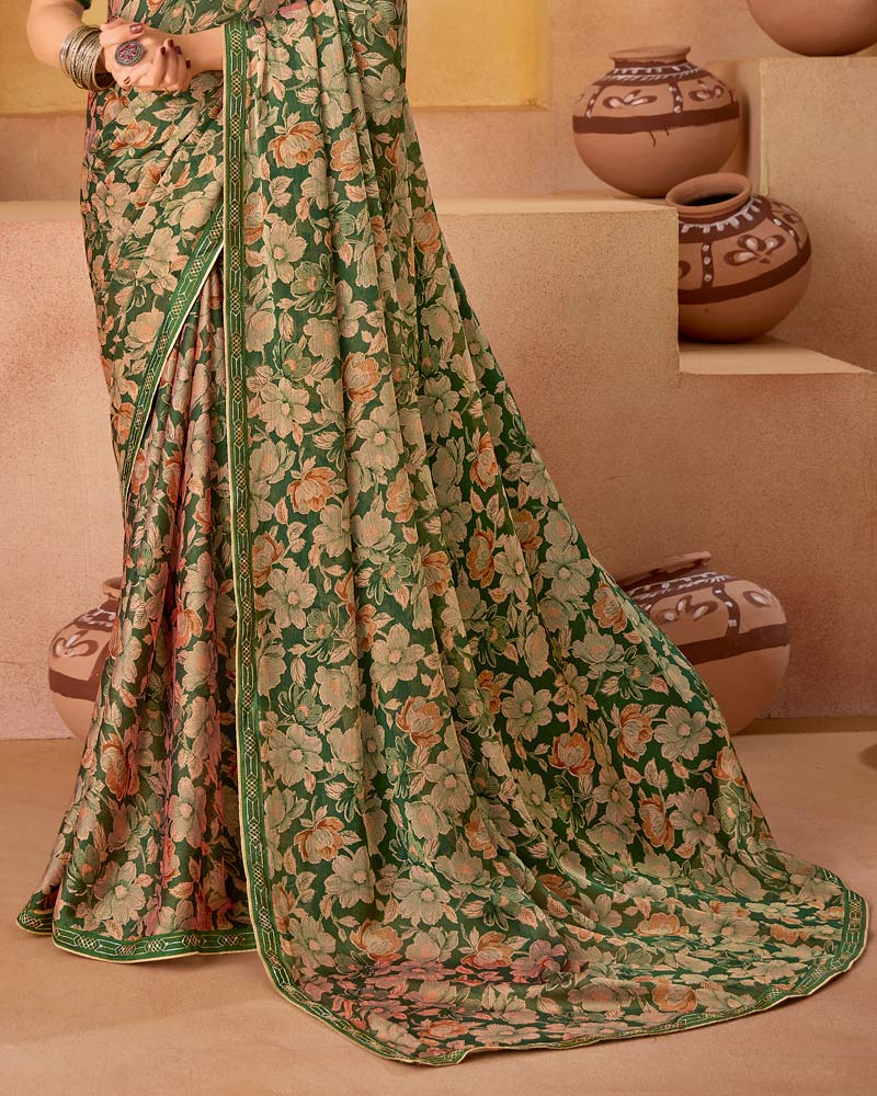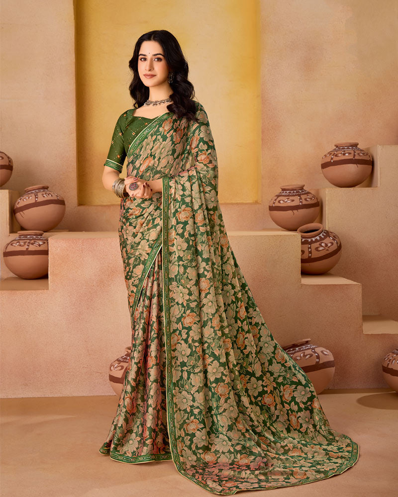 Vishal Prints Lunar Green Printed Fancy Chiffon Saree With Border