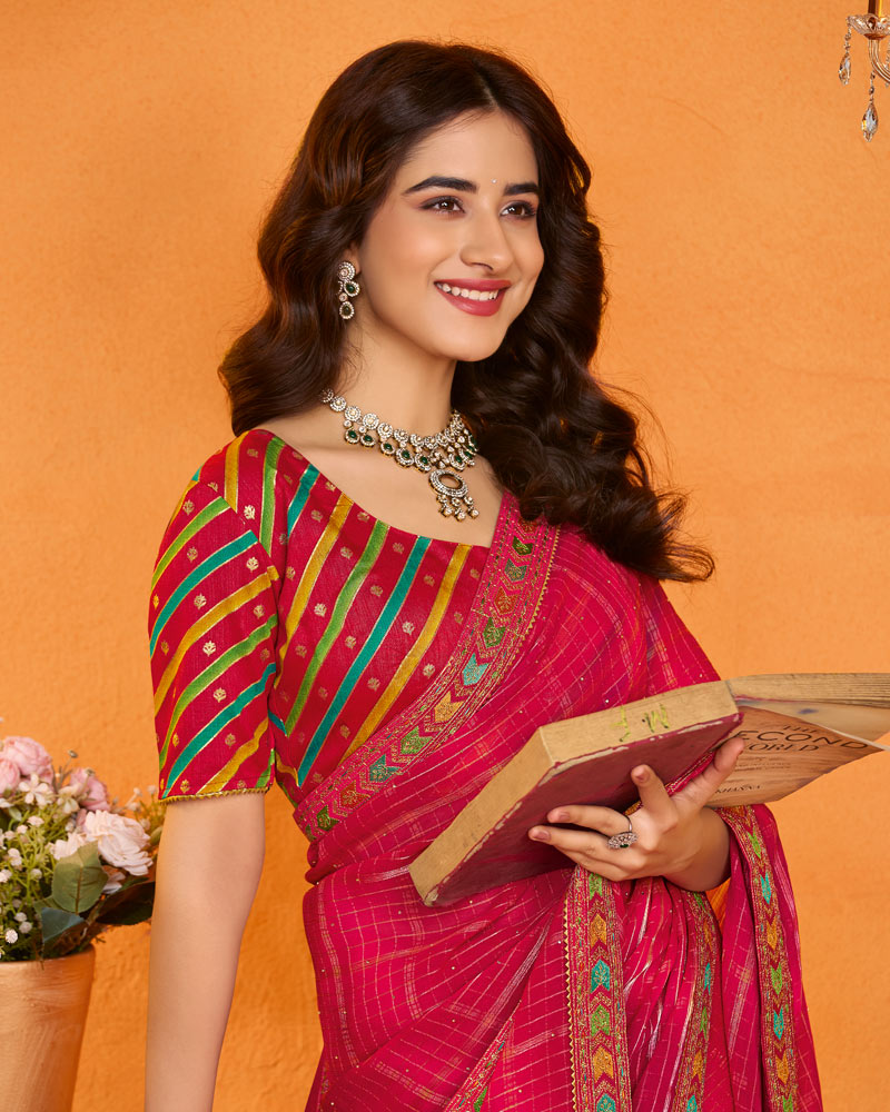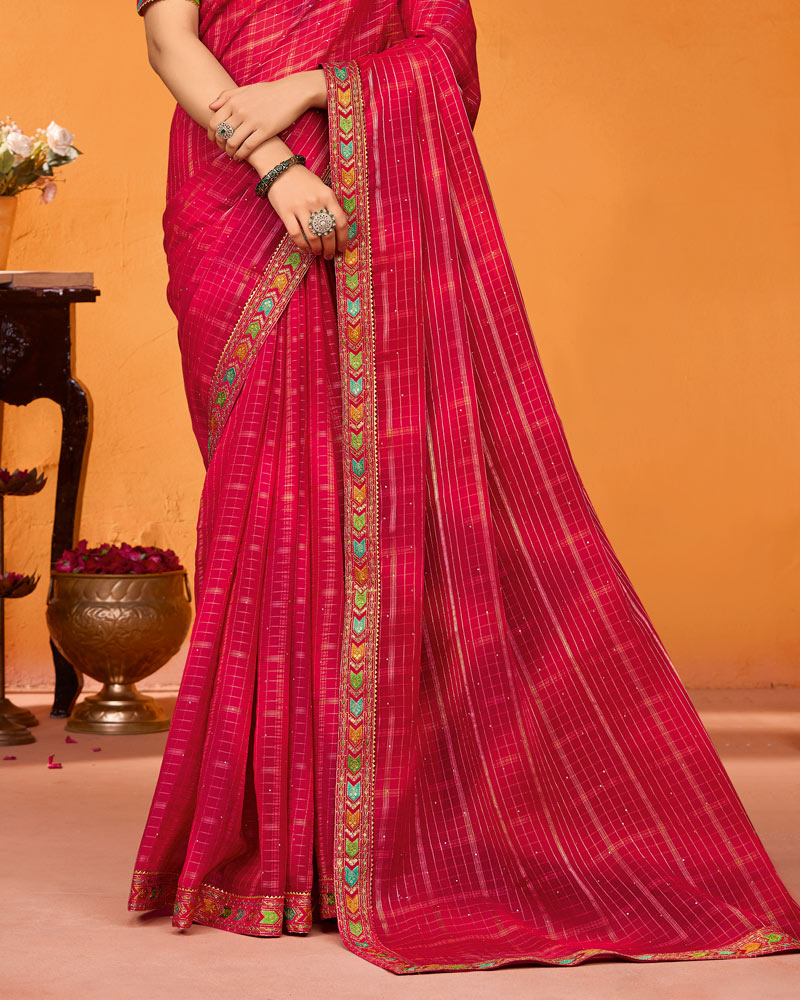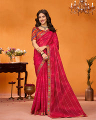 Vishal Prints Magenta Pink Designer Fancy Satin Saree With Embroidery-Diamond Work And Cut Work Border