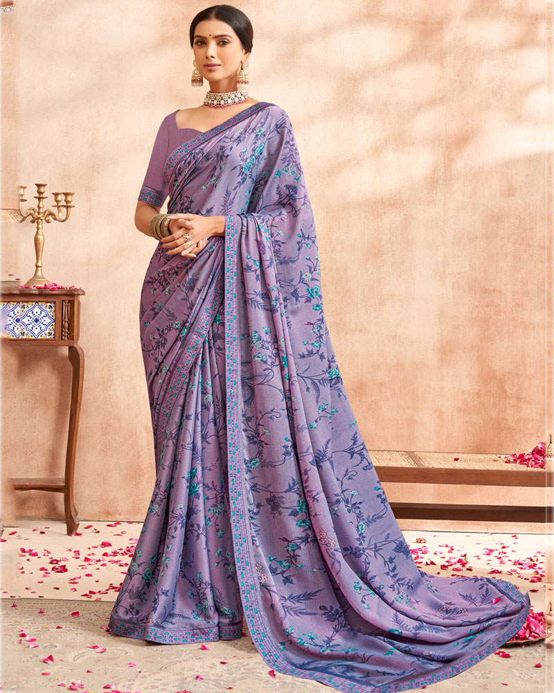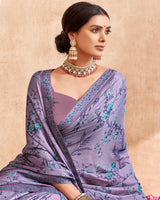 Vishal Prints Mamba Violet Digital Printed Brasso Saree With Fancy Border