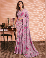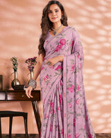 Vishal Prints Mauve Printed Criva Crepe Saree With Fancy Border