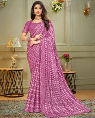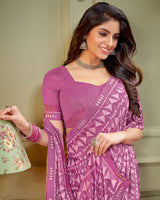 Vishal Prints Mauve Printed Criva Crepe Saree With Fancy Border