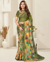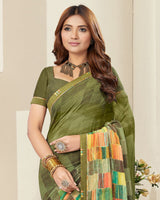 Vishal Prints Mehandi Green Digital Print Georgette Saree With Fancy Border