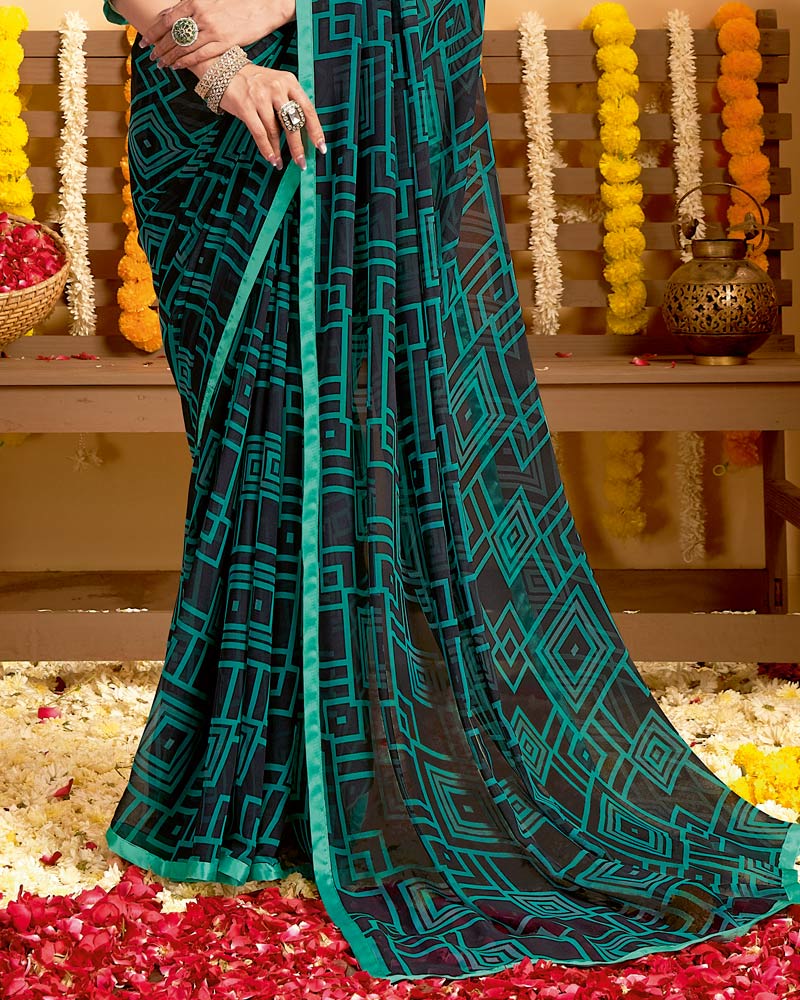 Vishal Prints Midnight Black Printed Georgette Saree With Satin Piping