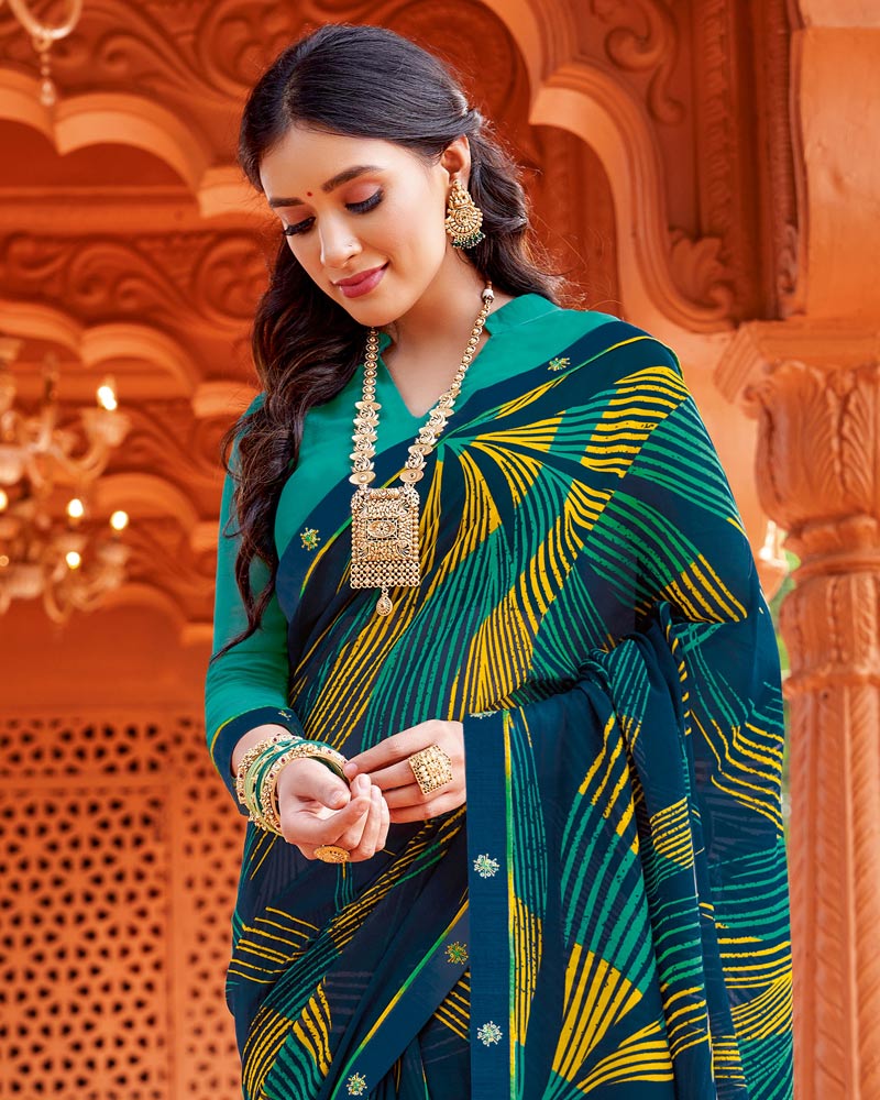 Vishal Prints Midnight Blue Printed Georgette Saree With Fancy Border