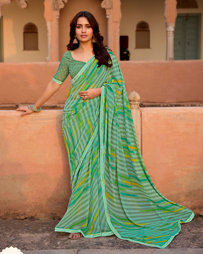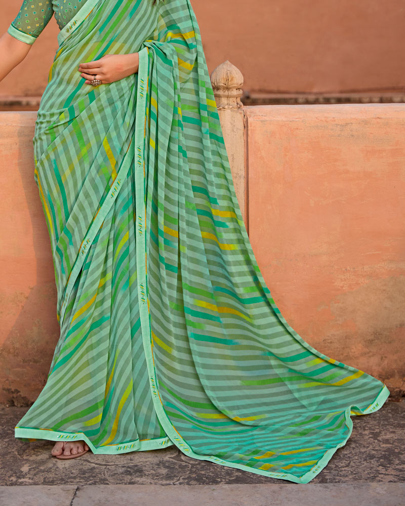 Vishal Prints Mint Green Printed Georgette Saree With Fancy Border