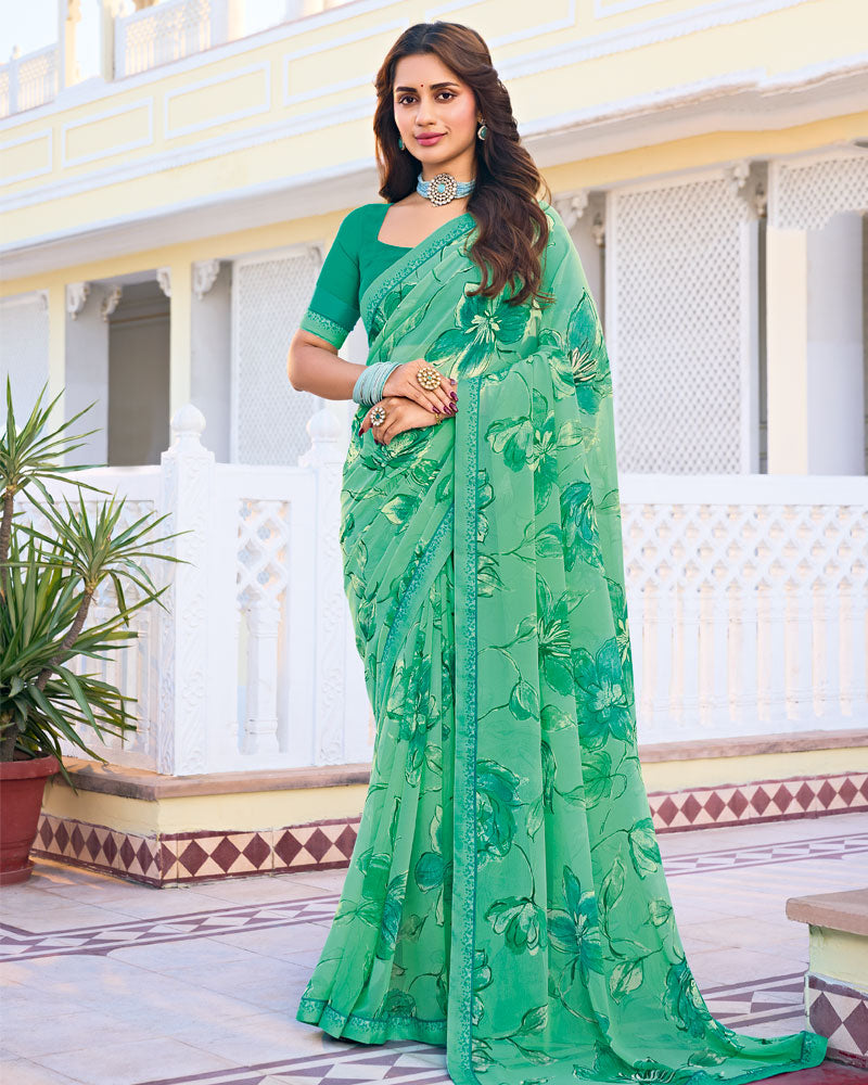 Vishal Prints Mint Green Printed Georgette Saree With Fancy Border