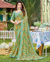 Vishal Prints Mist Green Printed Georgette Saree With Border