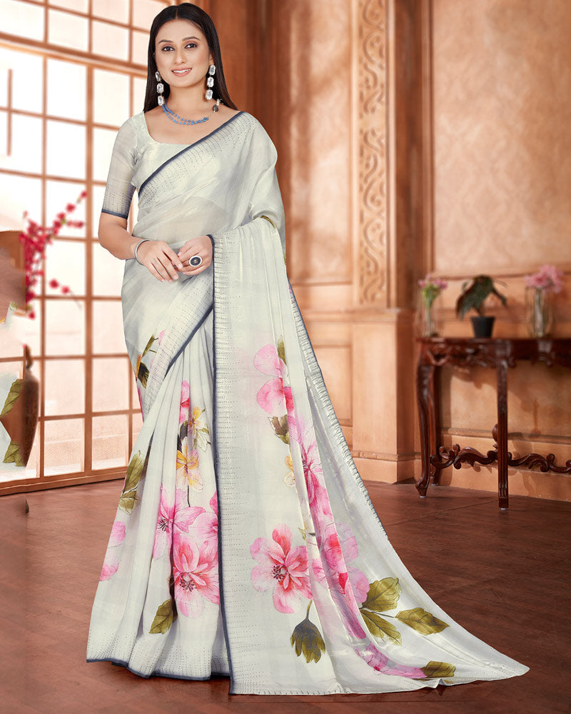 Vishal Prints Moon Mist Digital Print Organza Saree With Diamond Work