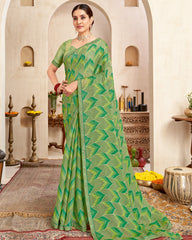 Vishal Prints Moss Green Printed Brasso Saree With Fancy Border