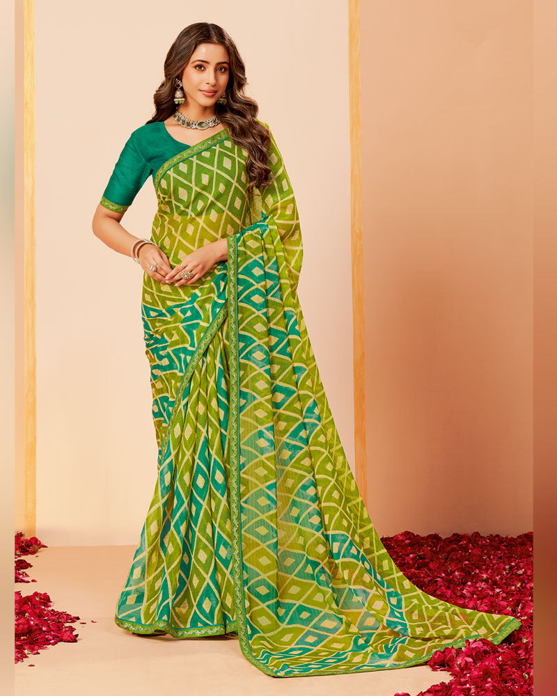 Vishal Prints Moss Green Printed Fancy Chiffon Saree With Border