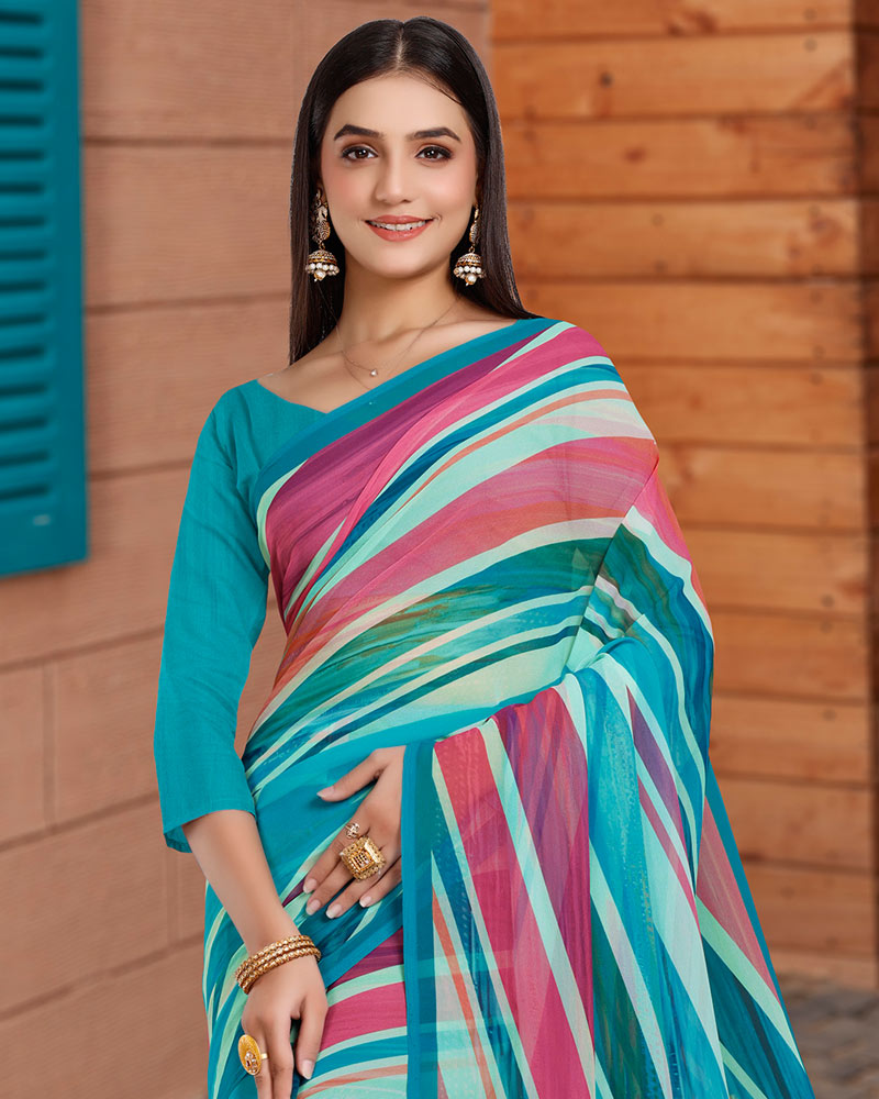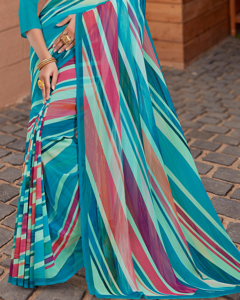 Vishal Prints Multi Blue Digital Print Georgette Saree
