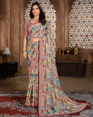 Vishal Prints Multi Color Digital Print Chiffon Brasso Saree With Fancy Border