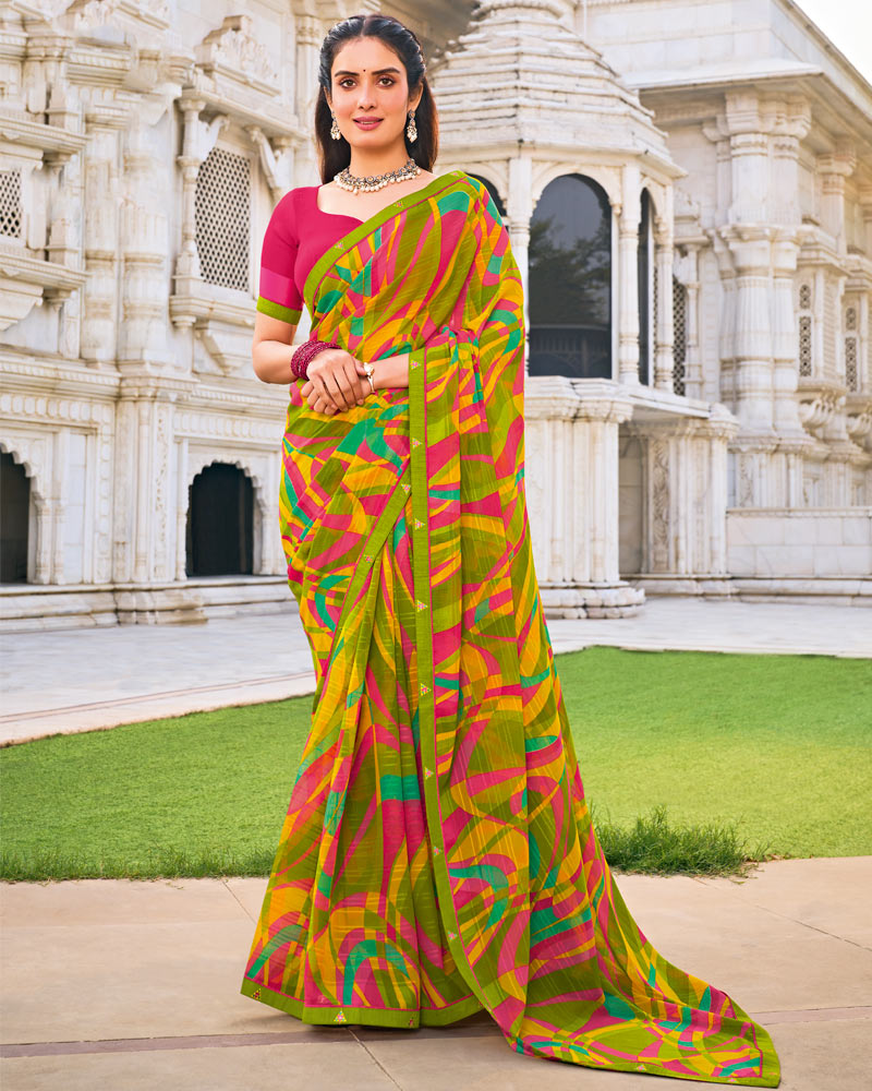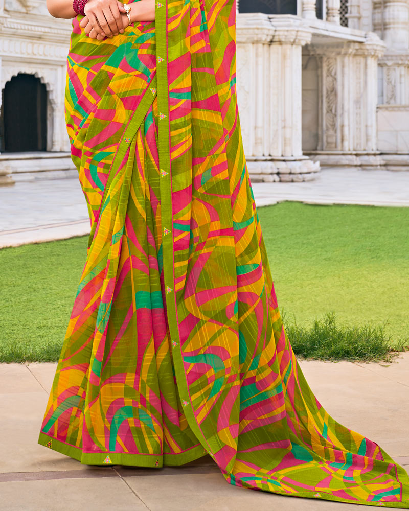 Vishal Prints Multi-Color Printed Patterned Georgette Saree With Fancy Border