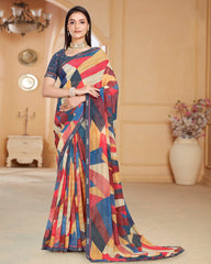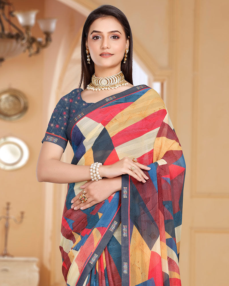 Vishal Prints Multicolor Patterned Chiffon Digital Print Saree With Fancy Border