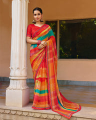 Vishal Prints Multicolor Printed Georgette Digital Print Saree With Fancy Border