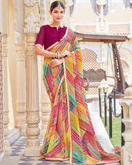 Vishal Prints Multicolor Printed Patterned Georgette Saree With Fancy Border