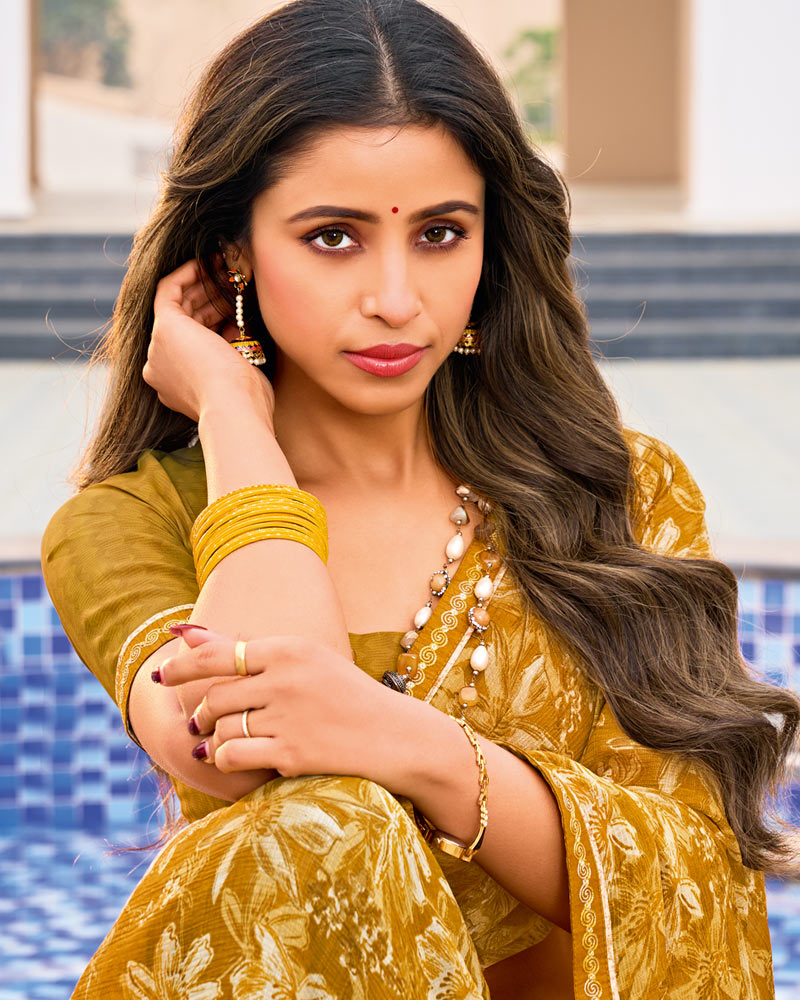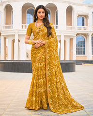 Vishal Prints Mustard Gold Printed Fancy Chiffon Saree With Fancy Border