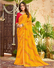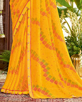 Vishal Prints Mustard Printed Georgette Saree With Fancy Border
