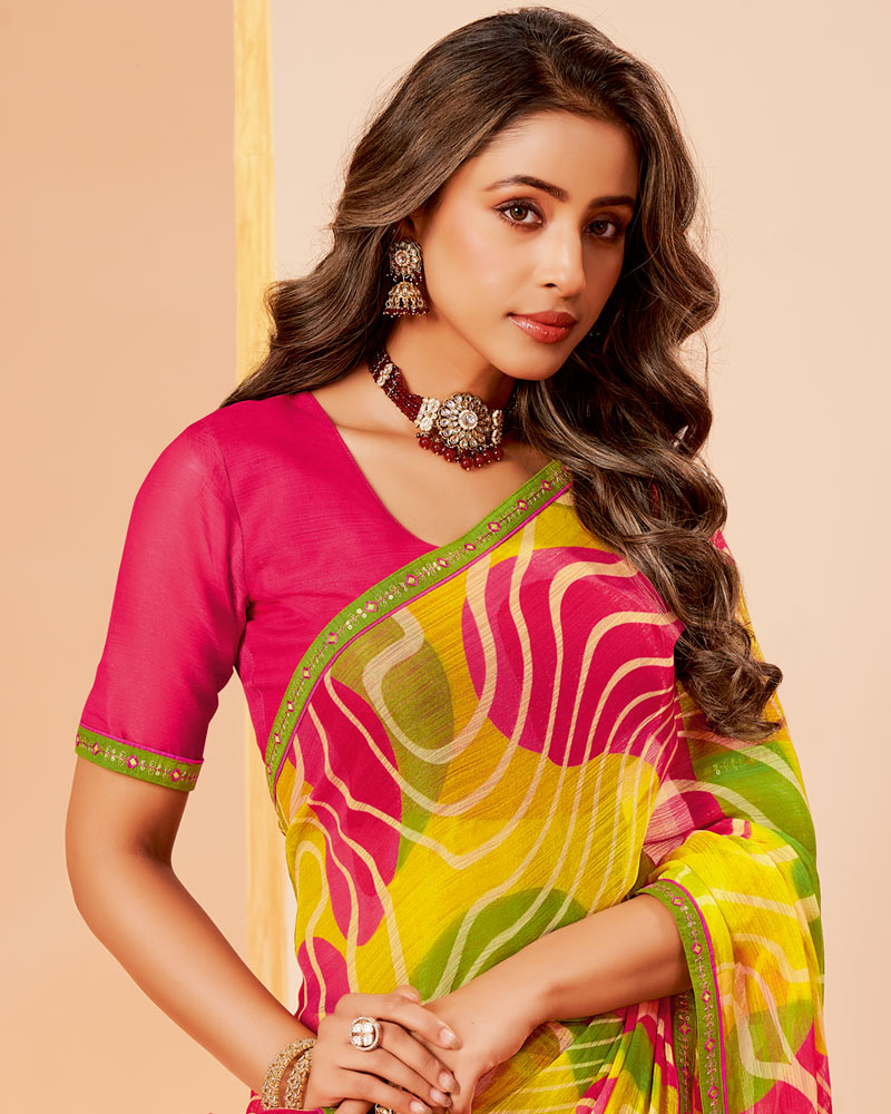 Vishal Prints Mustard Yellow Printed Fancy Chiffon Saree With Border
