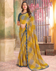 Vishal Prints Mustard Yellow Printed Georgette Saree With Fancy Border
