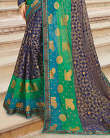 Vishal Prints Navy Blue Brasso Saree With Foil Print And Jari Border