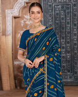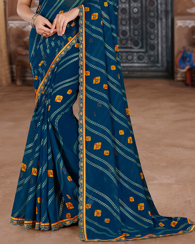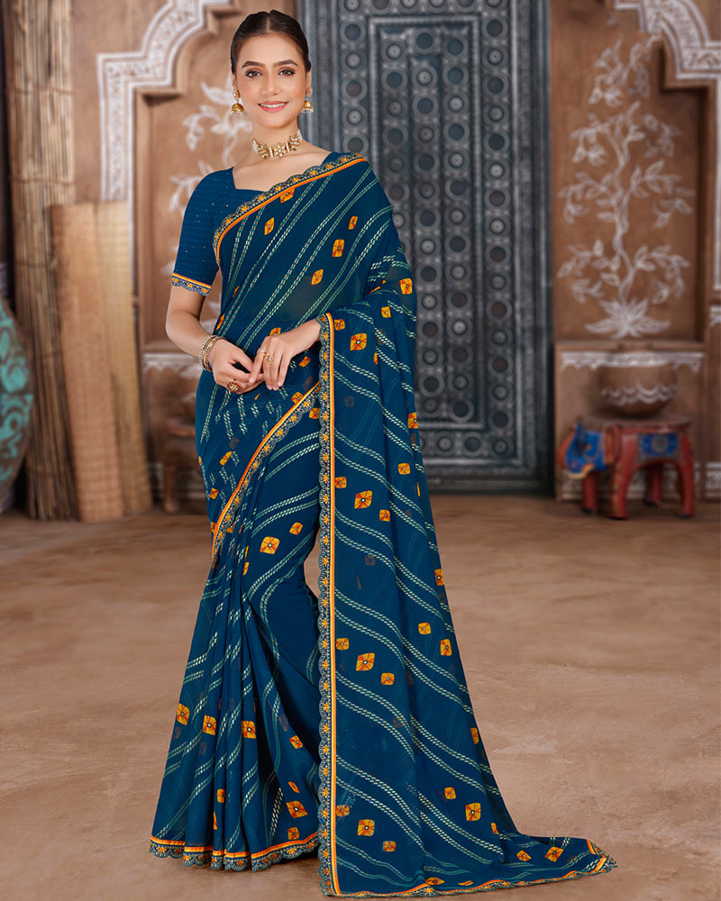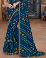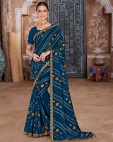 Vishal Prints Navy Blue Printed Chiffon Bandhani Print Saree With Foil Print And Cut Work Embroidery Border