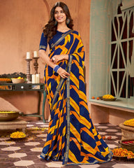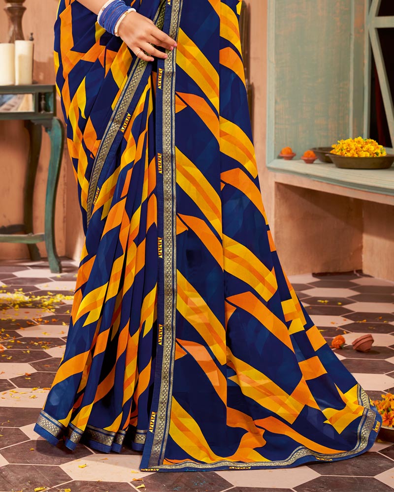 Vishal Prints Navy Blue Printed Georgette Saree With Border