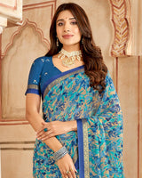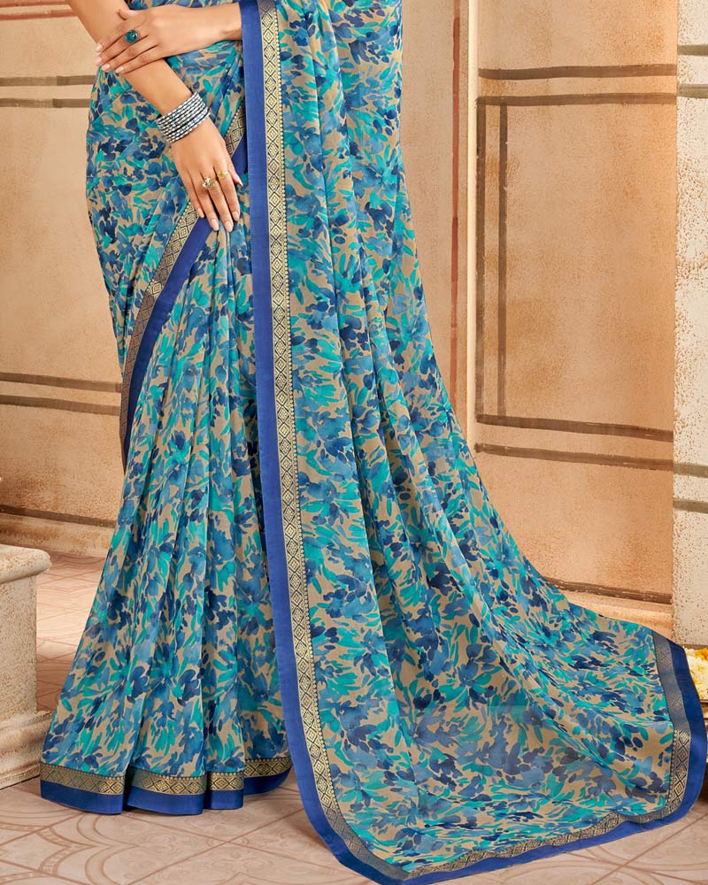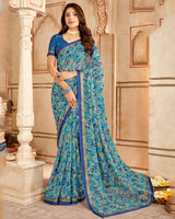 Vishal Prints Navy Blue Printed Georgette Saree With Fancy Border