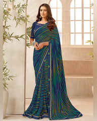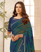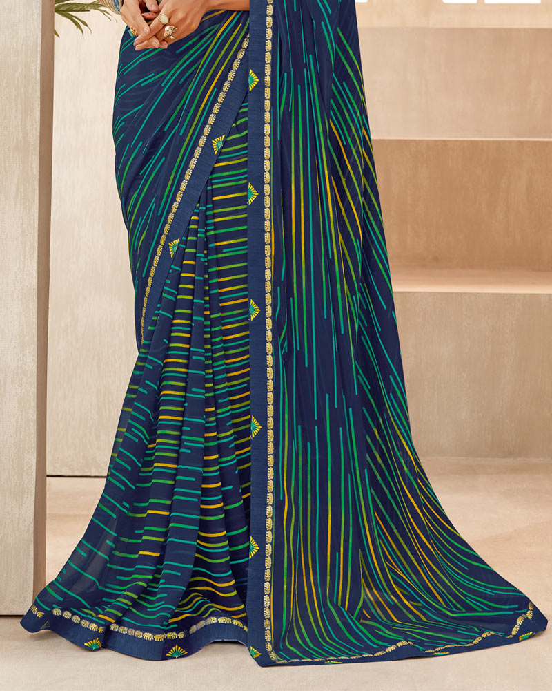 Vishal Prints Navy Blue Printed Georgette Saree With Fancy Border