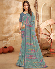 Vishal Prints Nevada Grey Printed Georgette Saree With Fancy Border