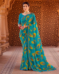 Vishal Prints Ocean Blue Printed Georgette Saree With Fancy Border