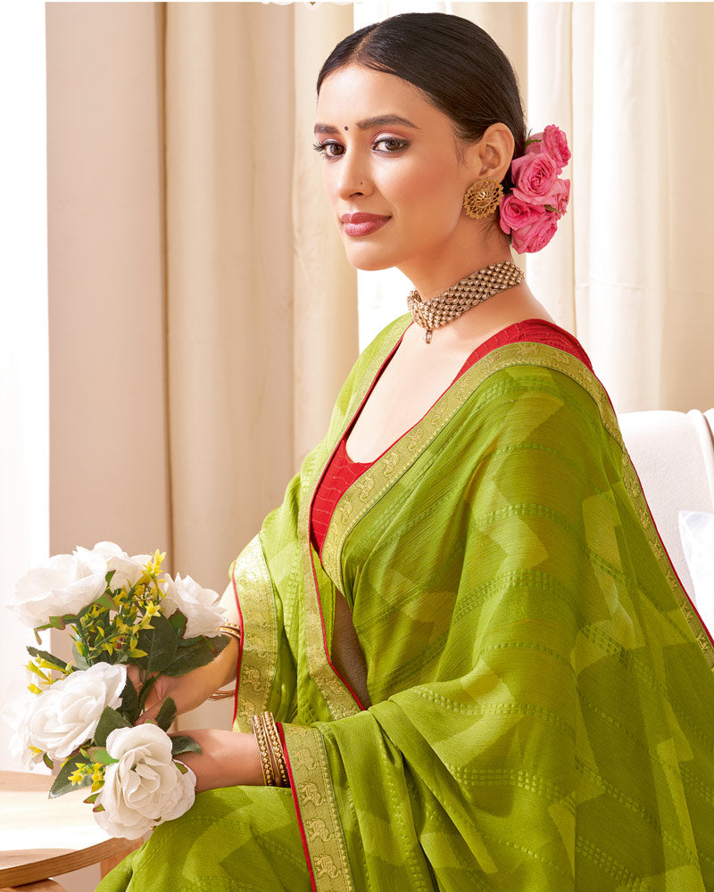 Vishal Prints Olive Green Designer Patterned Brasso Saree With Zari Border