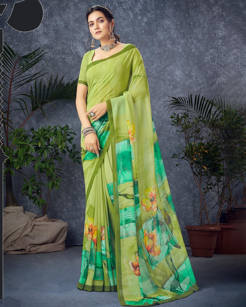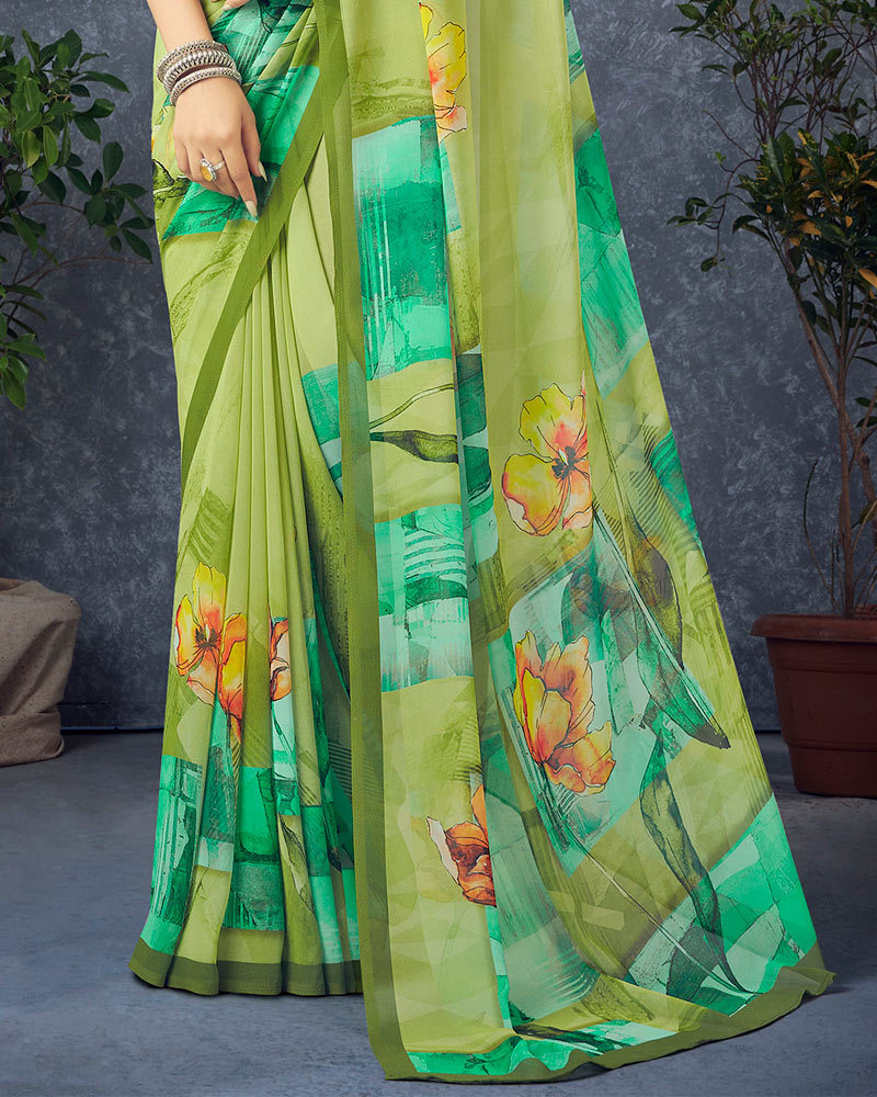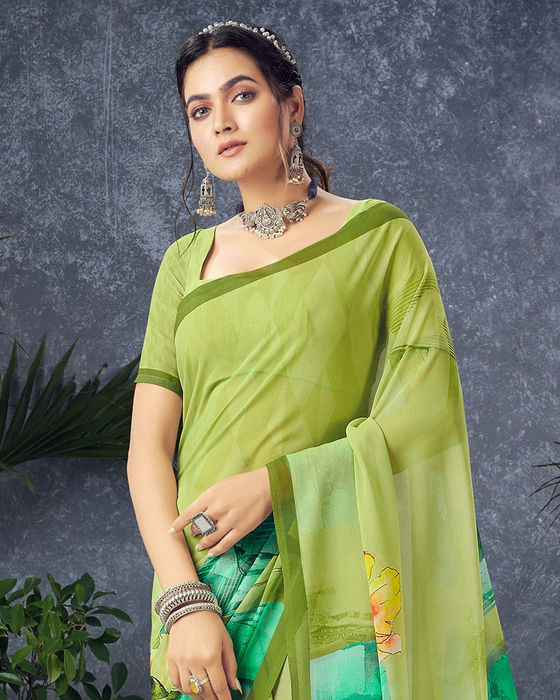 Vishal Prints Olive Green Digital Print Georgette Saree