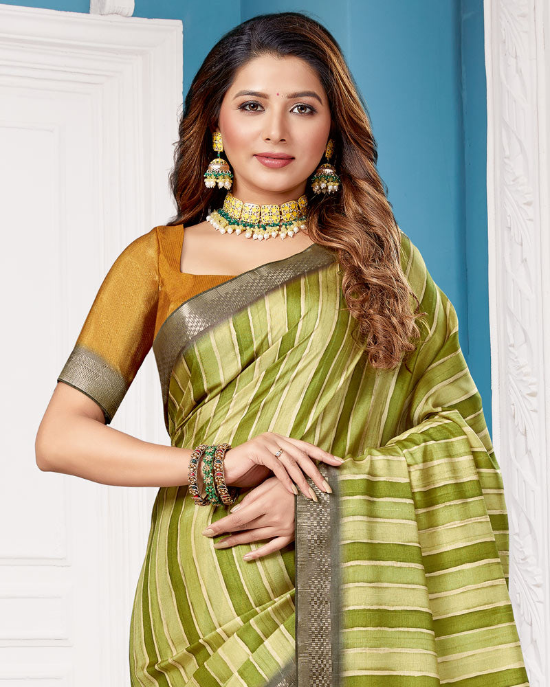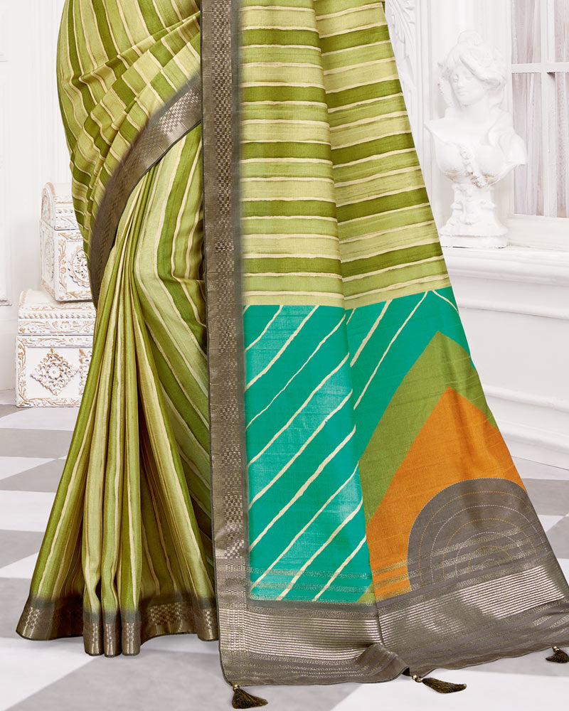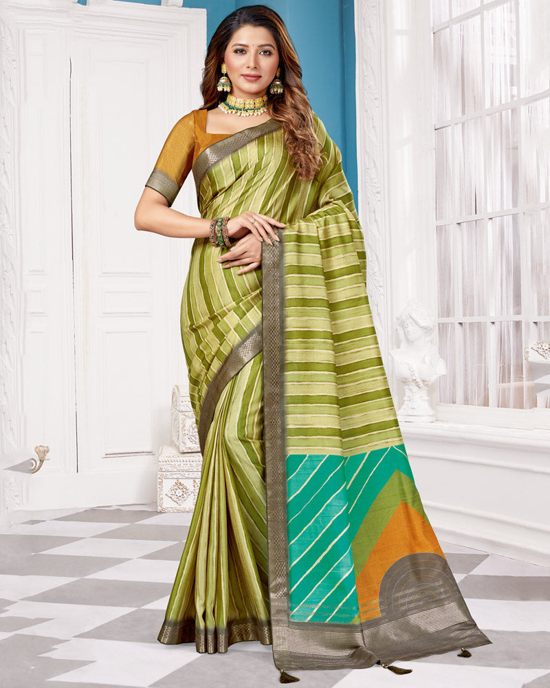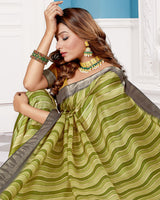 Vishal Prints Olive Green Poly Cotton Digital Print Saree With Fancy Border