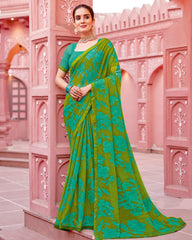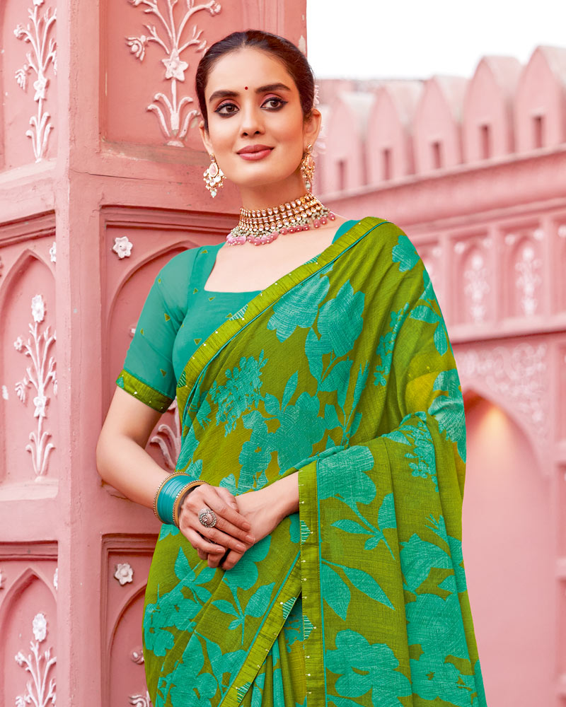 Vishal Prints Olive Green Printed Chiffon Saree With Fancy Border