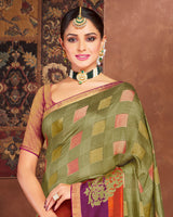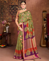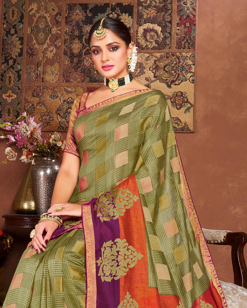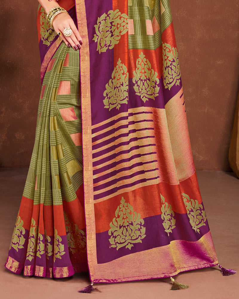 Vishal Prints Olive Silk Brasso Saree With Tassel