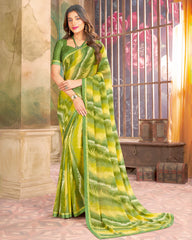 Vishal Prints Olive Yellow Printed Georgette Saree With Fancy Border