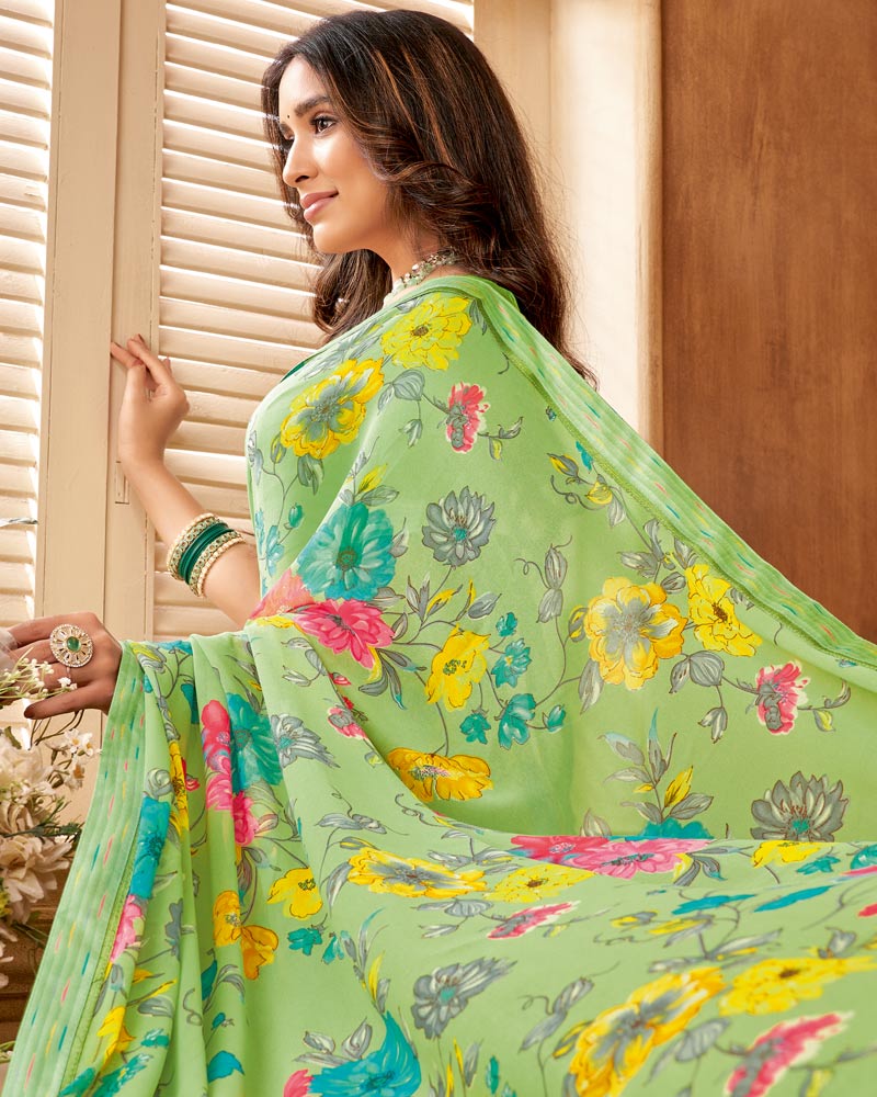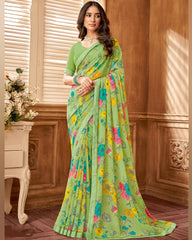Vishal Prints Olivine Green Printed Georgette Saree With Fancy Border