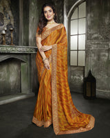 Vishal Prints Orange And Mustard Chiffon Saree With Jari Border