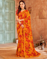 Vishal Prints Orange Printed Georgette Saree With Fancy Border