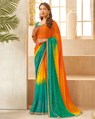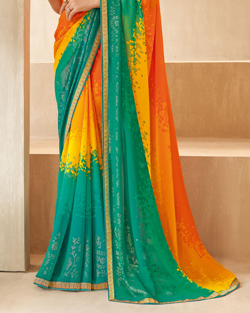 Vishal Prints Orange Printed Georgette Saree With Foil Print And Fancy Border