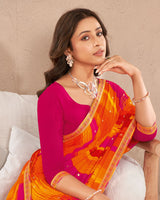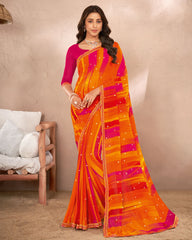 Vishal Prints Orange Printed Georgette Saree With Foil Print And Fancy Border