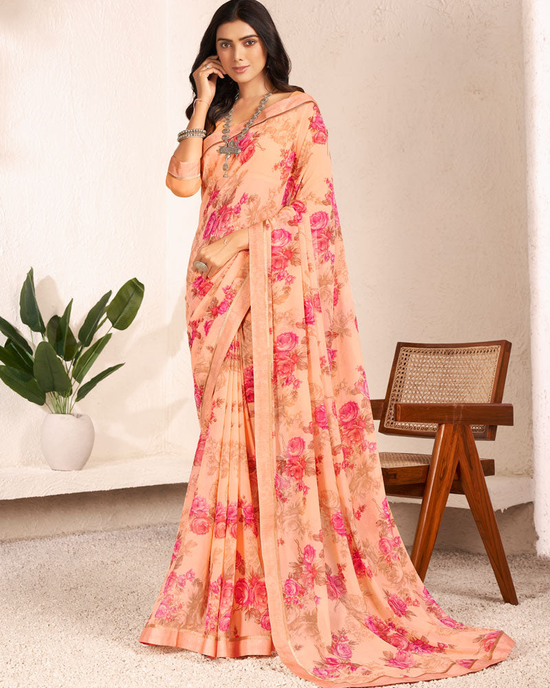 Vishal Prints Orange Printed Georgette Saree With Satin Border