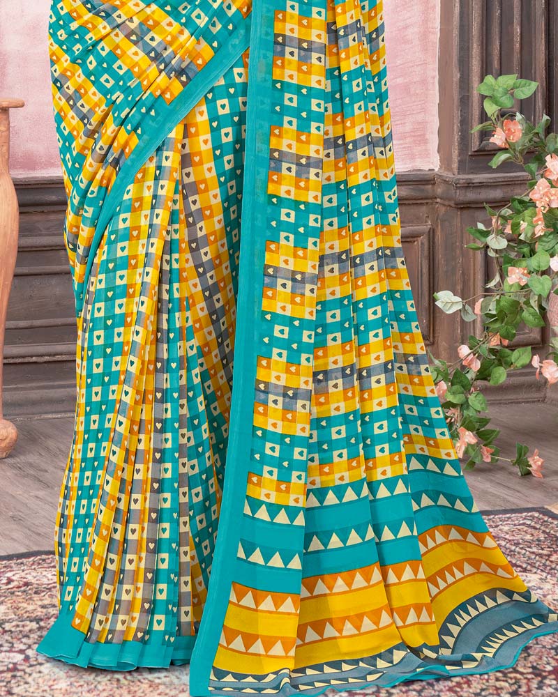 Vishal Prints Pacific Blue Printed Georgette Saree