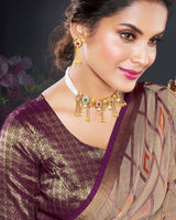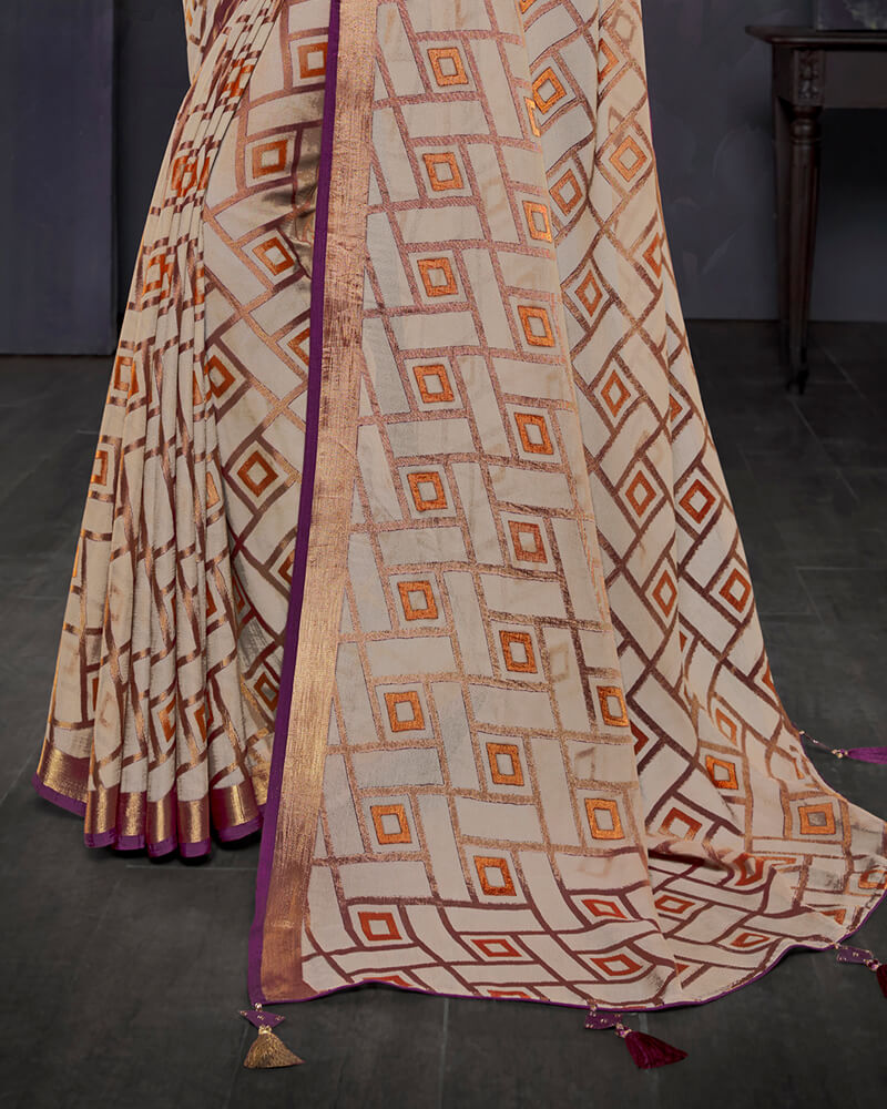 Vishal Prints Pastel Brown Brasso Saree With Foil Print And Tassel