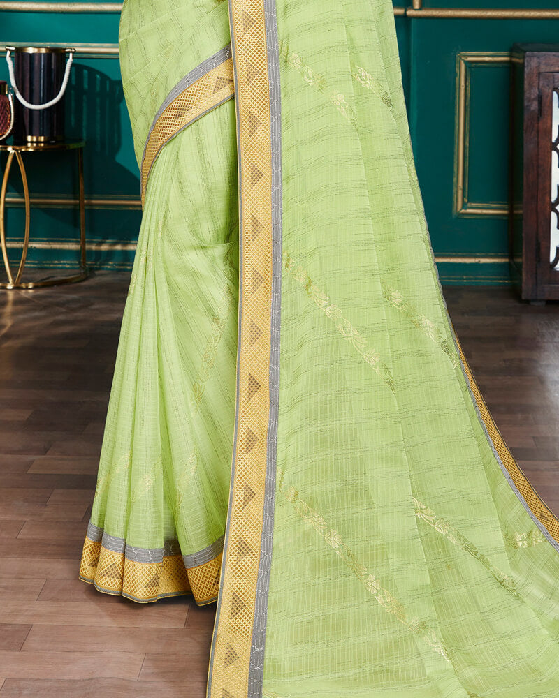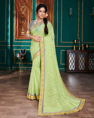 Vishal Prints Pastel Green Chiffon Saree With Foil Print And Jari Border