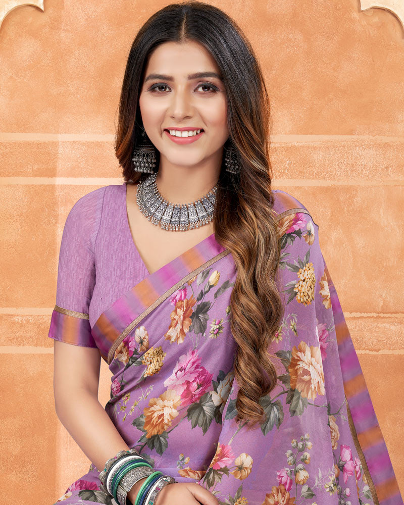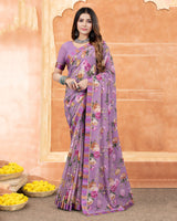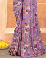 Vishal Prints Pastel Magenta Digital Print Georgette Saree With Satin Border