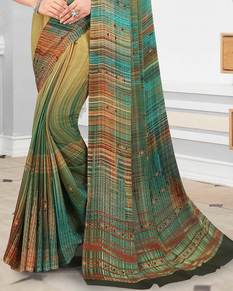 Vishal Prints Pastel Olive Digital Print Criva Crepe Saree