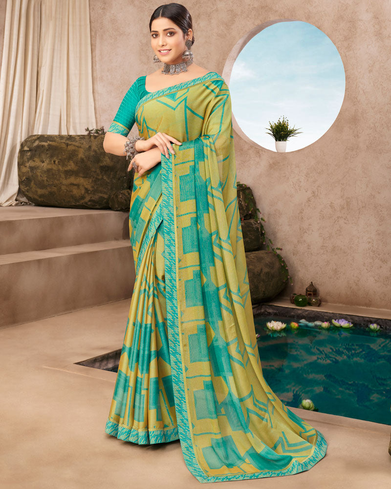 Vishal Prints Pastel Olive Printed Brasso Saree With Fancy Border