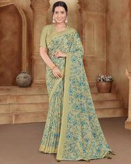 Vishal Prints Pastel Olive Printed Criva Crepe Saree With Tassel